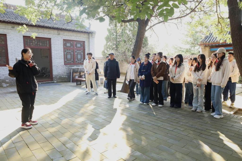 铜雀台、金凤台、冰井台,这组东汉末年邺城的标志性建筑,是曹魏政权政治、军事、文化格局的物质缩影,也是中国古代台榭建筑的经典遗存。在讲解员的专业引导下,师生们逐一考察三台遗址的建筑遗存、碑刻文物与空间布局。在遗址展厅内,师生们结合图文展览与实物遗存,系统梳理邺城的城市规划逻辑、三台的多元功能,以及其在三国至南北朝时期的历史地位演变,实地考察让“邺城遗址”从书本上的抽象概念变得可感可触。活动尾声,师生们在遗址庭院中交流感悟,将实地观察与学术思考相融合,为同学们后续的史学研究、论文创作积攒了鲜活的第一手素材。
