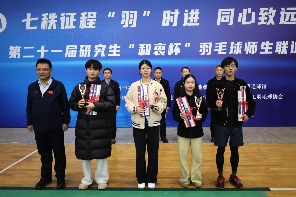 本次比赛以师生联谊的混合团体赛形式开展,包括“男双、女双、混双”等项目。我院参赛队员在赛场上奋发拼搏,团结一致,以饱满的热情和积极的心态投入本次比赛。场内队员技艺精湛,在赛场上灵活运用各种战术,将羽毛球运动的速度与激情展现得淋漓尽致,也让现场观众切身感受到了羽毛球的魅力,充分展现了我院师生们奋发拼搏、积极向上的精神面貌。经过激烈角逐,我院最终获得学校第二十一届研究生“和衷杯”羽毛球师生联谊赛第五名三等奖的优异成绩。