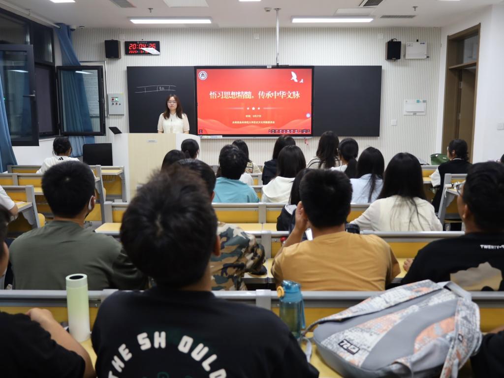 为深入贯彻中共中央宣传部关于认真组织学习习近平文化思想的通知精神,9月27日晚,我院面向2025级新生开展主题团日活动,由我院团委副书记王亚琪担任主讲人。