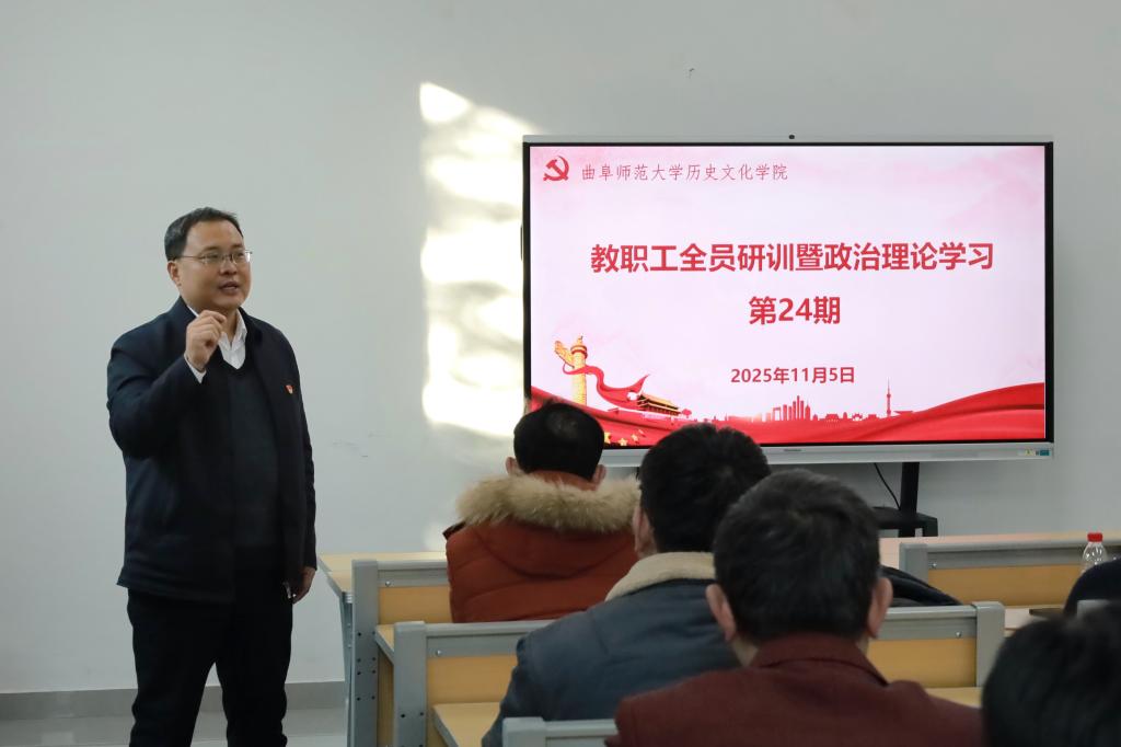 2025年11月5日下午,我院在孔子书院B106教室举行教职工政治理论学习暨全员研训第24期活动。活动由学院党委书记姜开勇主持,学院在校教职工60余人参加活动。