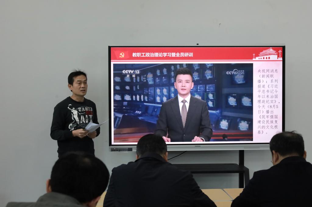 全体教师还集中观看了视频《习近平总书记今年以来治国理政纪实》之《筑牢强国建设民族复兴文化根基》。今年以来,总书记站在建设中华民族现代文明的高度,推动发展社会主义先进文化、弘扬革命文化、传承中华优秀传统文化。在习近平文化思想指引下,新时代中国正以更加坚定的文化自信,书写社会主义文化强国建设的绚丽篇章。