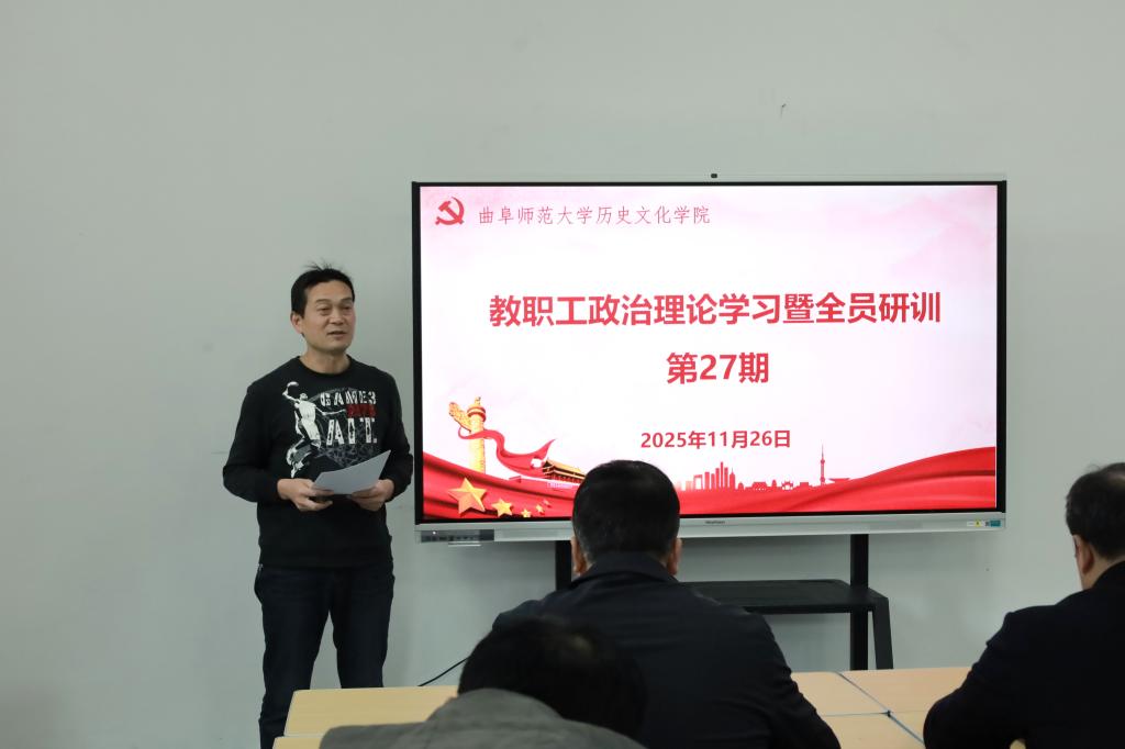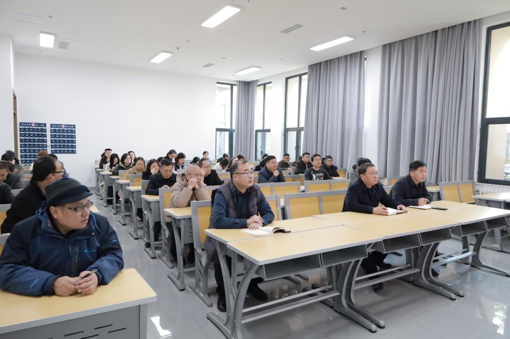 2025年11月26日下午,我院在孔子书院B106教室举行教职工政治理论学习暨全员研训第27期活动。活动由党委学习委员孙锋主持并领学,学院在校教职工60余人参加活动。